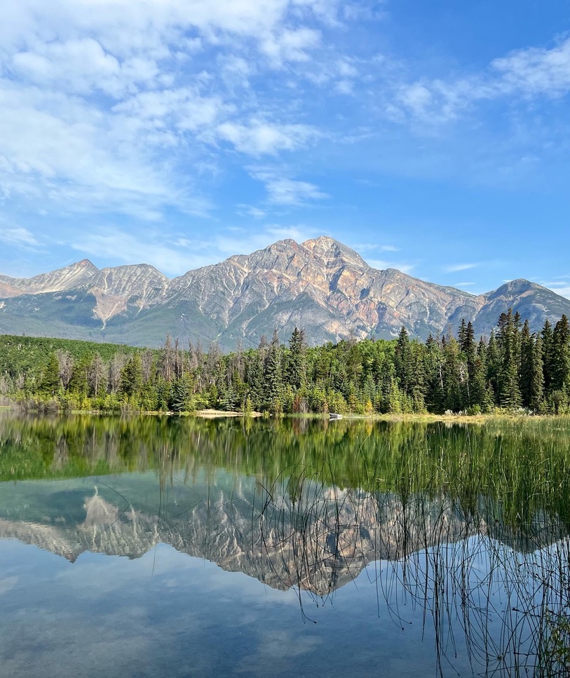 The final leg of the drive took about 1.5 hours to reach Pyramid Lake Lodge, our beautiful and serene hotel for our time in Jasper. Its only a 10 minute drive to downtown and staying right on the lake with the mountain in the back was an incredible experience. The hotel also has Adirondack chairs and fire pits you can sit around for the evenings!