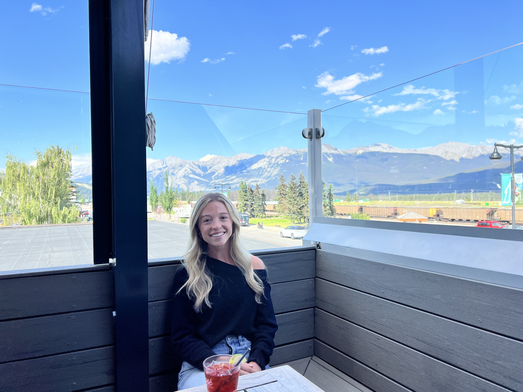 After seeing Maligne Canyon we stopped by our hotel then headed to downtown Jasper for an early dinner (we were quite hungry!) at Jasper Pizza Place. Each day we were in Jasper this restaurant was very busy, so we would recommend getting there early if you can. We were able to grab a seat on their rooftop patio which had stunning views of the surrounding mountains.