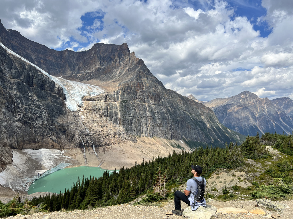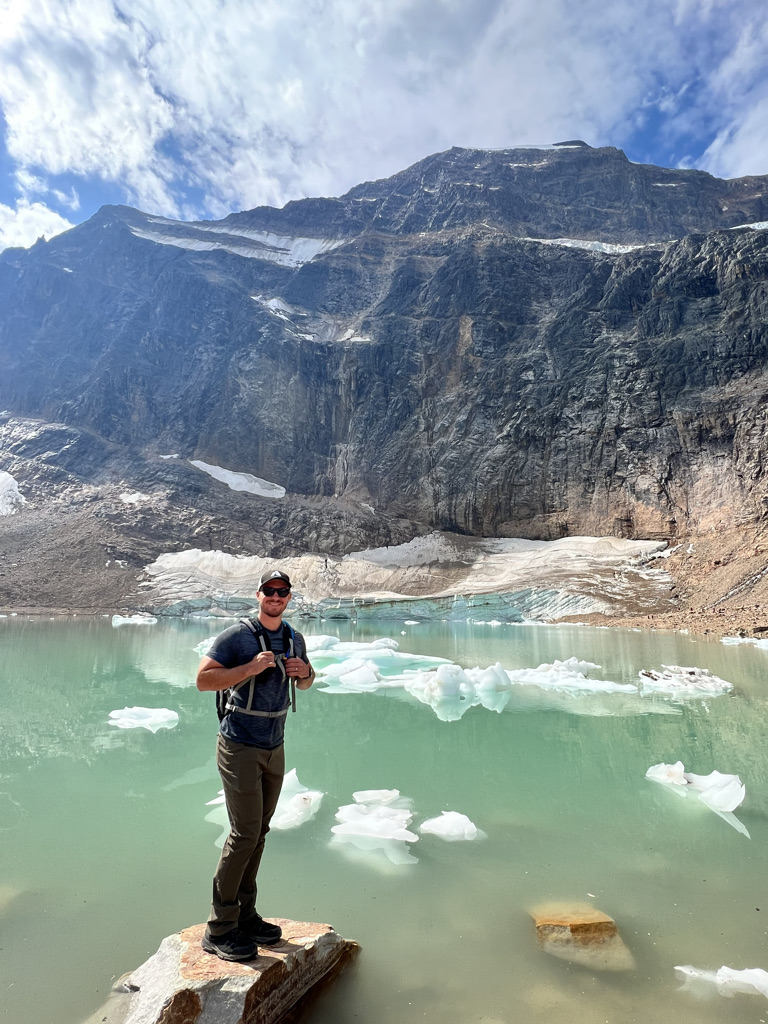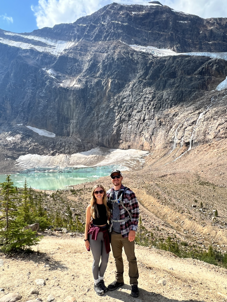 We then drove into Jasper National Park to the Mount Edith Cavell trailhead. We were able to park directly at the trailhead and begin the ~5.5 mile roundtrip hike. We started on the path of the glacier hike which takes you down to the edge of Cavell Pond. From there you can see both Angel Glacier and Cavell Glacier.