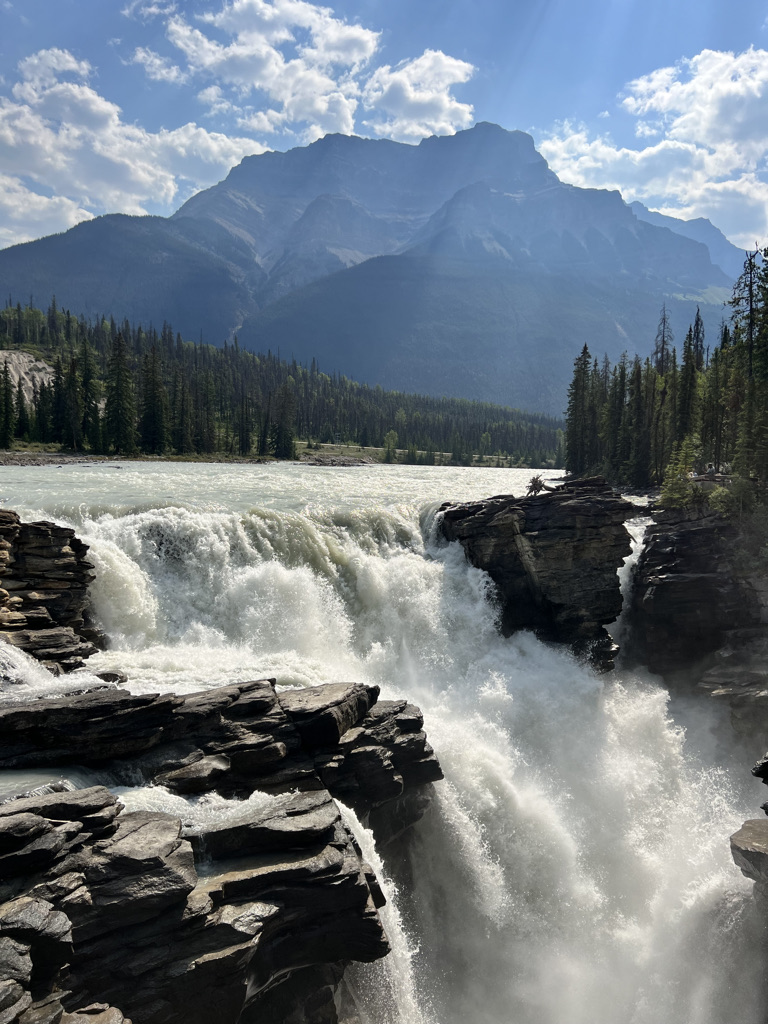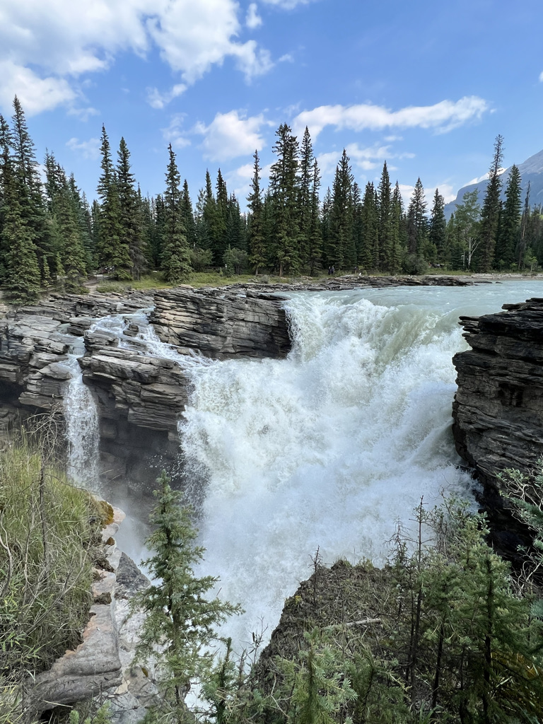 On our return trip we made several stops to ensure we saw everything along the Icefields Parkway that we could. Our first stop was at Athabasca Falls, a magnificent waterfall that’s just a short walk from the parking lot. The ferocity of the water reminded us how powerful nature truly is.