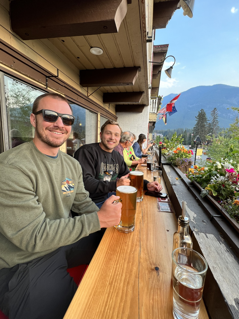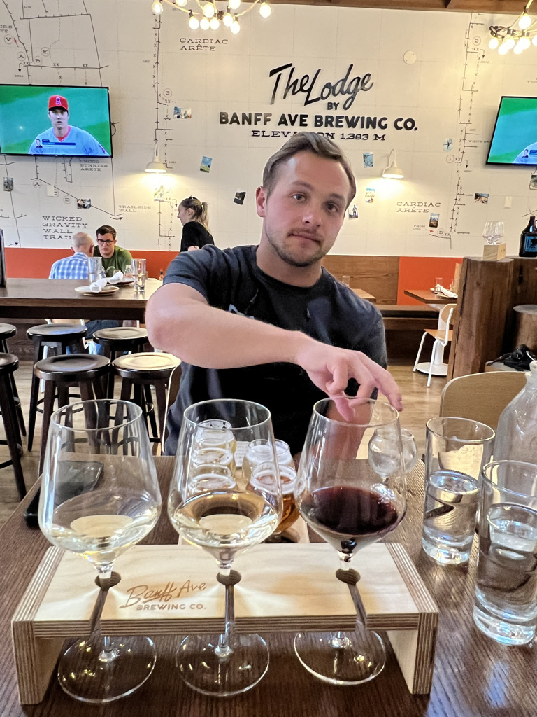 After dinner we walked around downtown and stopped by the Banff Ave Brewing Company for beer and wine flights. Matt and Eric had the beer flight which allowed them to try 6 different beers of their choosing for just $19. Emily had the wine flight consisting of 3 wines from British Columbia for $20. We really enjoyed both the ambiance and the drinks and would recommend stopping by in one of your evenings!