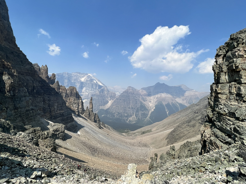 We were dropped off right at Moraine Lake, which is even more incredible in person than we could have imagined. From there we started the hike to Sentinel Pass via Larch Valley, a 7 mile out and back trail. The trail begins with a fairly steep ascent through a forest (if you visit in the fall, the yellow trees here are indescribable) before flattening out and opening up. The last leg up to the Sentinel Pass requires negotiating several steep switchbacks, but the final view at the top is one of the most spectacular in all of Banff.
