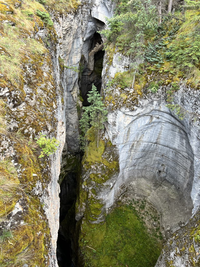 Once we finished our “big” hike for the day, we drove further down the road to Maligne Canyon. Maligne Canyon is considered one of the most beautiful canyon hikes in the Rockies, and the trail has 6 different bridges throughout the canyon. The entire hike is 2.3 miles one way from the 1st to the 6th bridge, so the entire trail is 4.6 miles roundtrip.