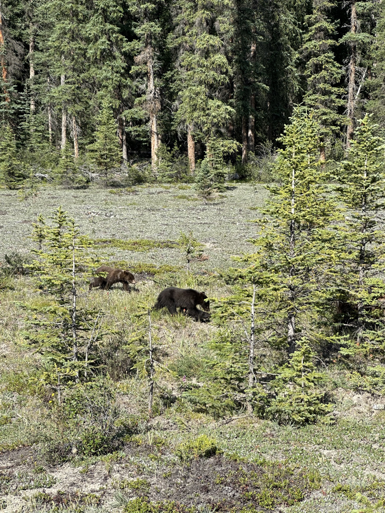 On the drive we saw a mama grizzly bear and her two cubs walking along the side of the road. Bear mace is an absolute must when doing some of the hikes we did, so we bought bear mace in Banff before we set off on the Icefields Parkway. We recommend buying it when you arrive as well (you can’t fly with it! Even in your checked bag), just for the peace of mind.